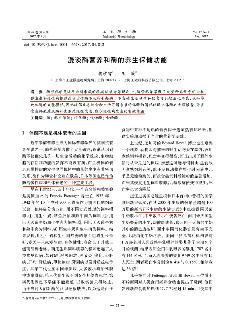 中国酶学界泰斗胡学智专家《漫谈酶营养和酶养生保健功能》